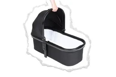 snug™ carrycot's UPF50 sun hood protects baby on the go & incorporates a handy carry handle, making transferring on&off the buggy easy.